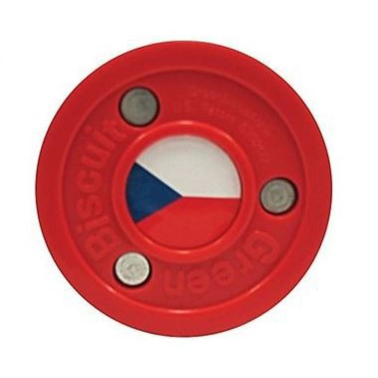 Green Czech Rep. BlueSports Green Biscuit in-line hockey puck in the colors of the Czech Republic national team. Green Biscuit practice puck with the Czech Republic flag in the center.