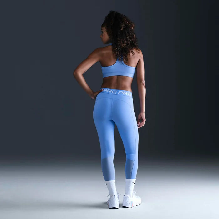 A Nike Pro leggings izzadságelvezető anyagból készült, a vádlin átívelő hálós anyag pedig hűvösen és szárazon tart. A puha, rugalmas anyag együtt mozog veled sprint, kitörés és nyújtás közben. Ez a termék legalább 50%-ban újrahasznosított poliészter szálakból készült.